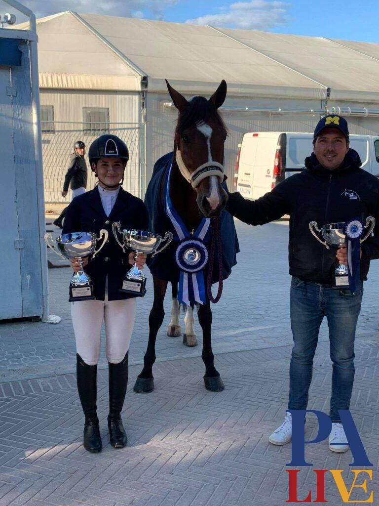 L’amazzone palermitana Elena Terrani, tesserata per la A.S.D. Parco Fondo Badia , istruttore Gianluca Macchiarella, in sella alla sua Landinas, 7 anni, ( Lordanos x Cridelia Baia), conquista la medaglia d’oro nel criterium 7 anni ed oltre brevetto con 211.50 punti.
