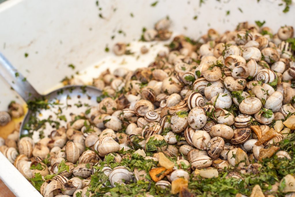 I Babbaluci, piccole lumache di terra da mangiare rigorosamente con le mani dal sapore inconfondibile, sono il piatto principe del Festino. Dopo averle raccolte, vengono pulite sotto l’acqua per eliminare eventuali residui terrosi e cotte in un soffritto di aglio e prezzemolo. Il rito vuole che i babbaluci siano mangiati direttamente dal guscio, succhiandoli.