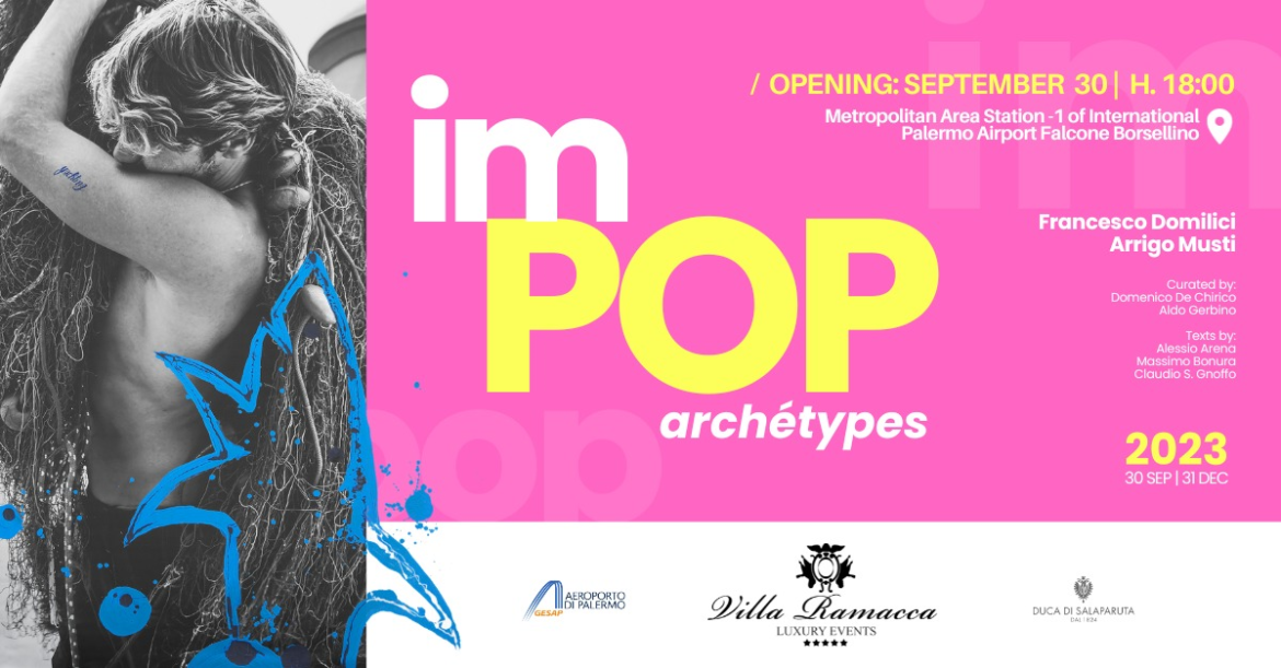 Una mostra d’arte contemporanea allestita lungo il grande corridoio che congiunge gli arrivi dell’Aeroporto con la stazione metropolitana di Palermo. Impop Archetypes (questo il nome della mostra) consta di 6 grandi lavori (metri 2×3) degli artisti Francesco Domilici e Arrigo Musti, ed è curata da Domenico De Chirico ed Aldo Gerbino.