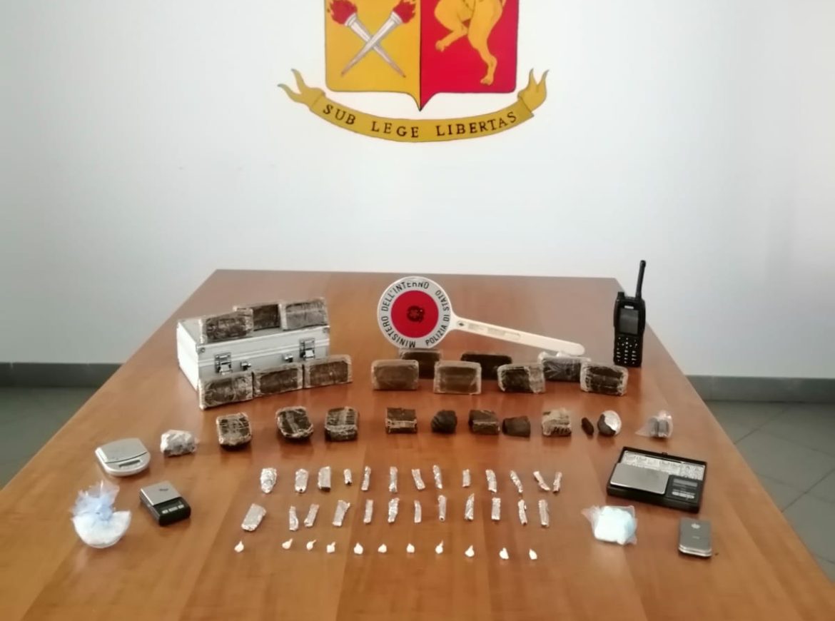 La Polizia ha inoltre rinvenuto 5 bilancini di precisione, un tagliere in legno e un coltello, presumibilmente utilizzati per il confezionamento della sostanza.