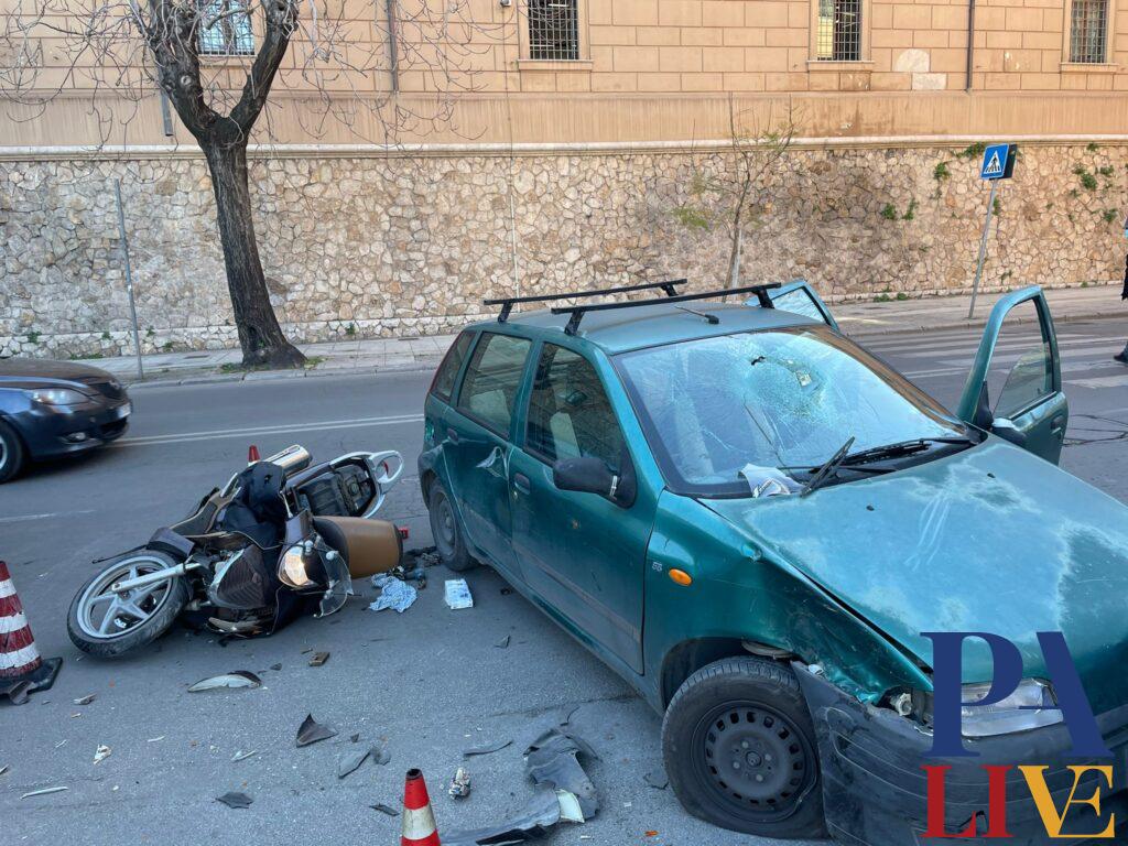 Incidente in corso Alberto Amedeo, che ha coinvolto una fiat punto e uno scooter, guidato da un uomo di circa 30 anni, che si trova adesso presso l’ospedale civico.