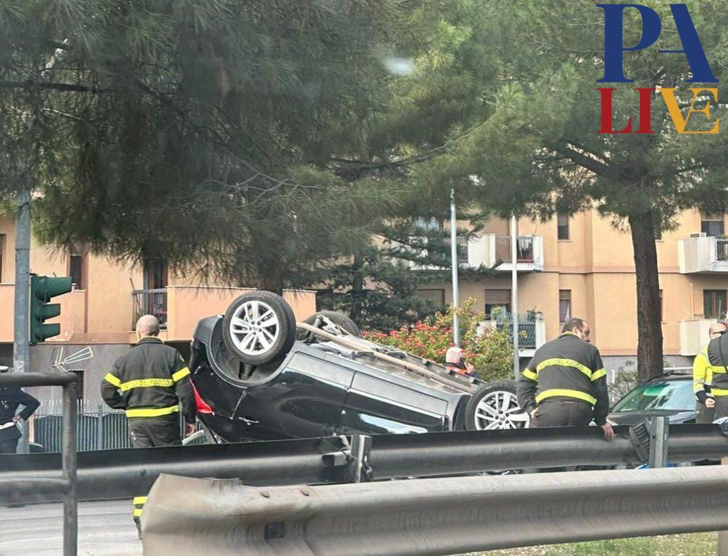 Incidente in viale Regione Siciliana, auto si ribalta dopo essere finita contro il guardrail