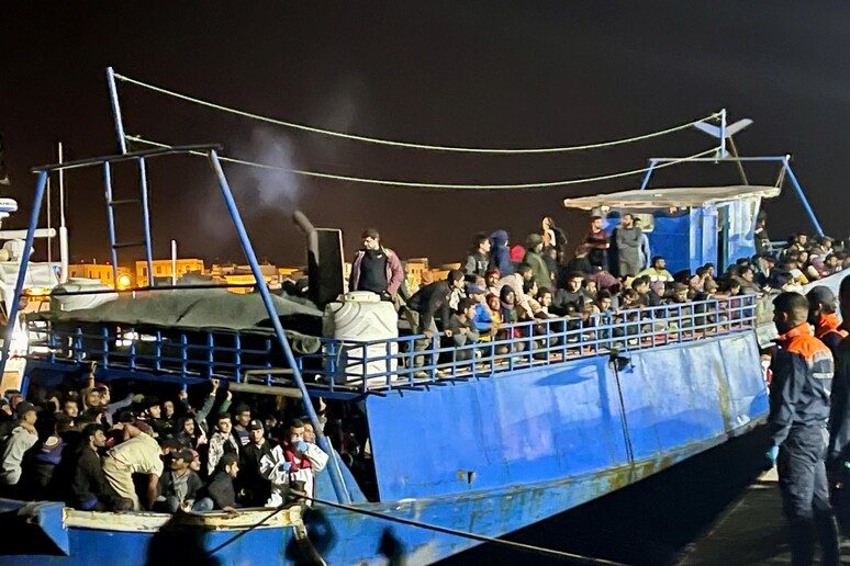 Maxi sbarco di migranti a Lampedusa. Un peschereccio con a bordo 530 persone, quasi tutte originarie del Bangladesh, è stato agganciato e scortato fino al porto dalla guardia costiera per evitare rischi legati al forte il vento.