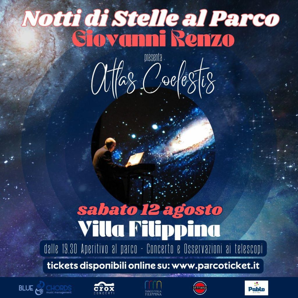 “Atlas Coelestis” è il titolo del viaggio siderale nello spazio che verrà offerto da Giovanni Renzo, musicista e appassionato di astronomia, sabato 12 agosto a partire dalle 20,30 a Villa Filippina.