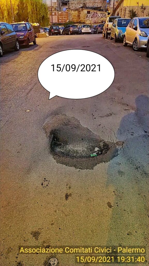 “Facciamo seguito alla corrispondenza intercorsa sull’argomento in oggetto per segnalare che la voragine si sta riformando a distanza di pochi giorni dalla riparazione. Quella di 16 c.m. ricoperta con mattone dai residenti. Un’altra di 23 c.m. ricoperta in modo approssimativo con il solito sacchetto di bitume, e infine 25 c.m. eccola riformarsi. Questa insidia è pericolosa per tutti coloro che transitano da quel luogo. Per evitare ulteriori sprechi di denaro con interventi approssimativi e non professionali, vi chiediamo che siano ripristinate le condizioni di sicurezza della strada in questione, facendo certificare la corretta esecuzione del lavoro, come previsto dai vigenti norme in materia di lavori pubblici.” Un vero e proprio grido d’aiuto, volto a scongiurare il peggio. Una legittima richiesta che, a Palermo, si rischia non venga mai ascoltata.