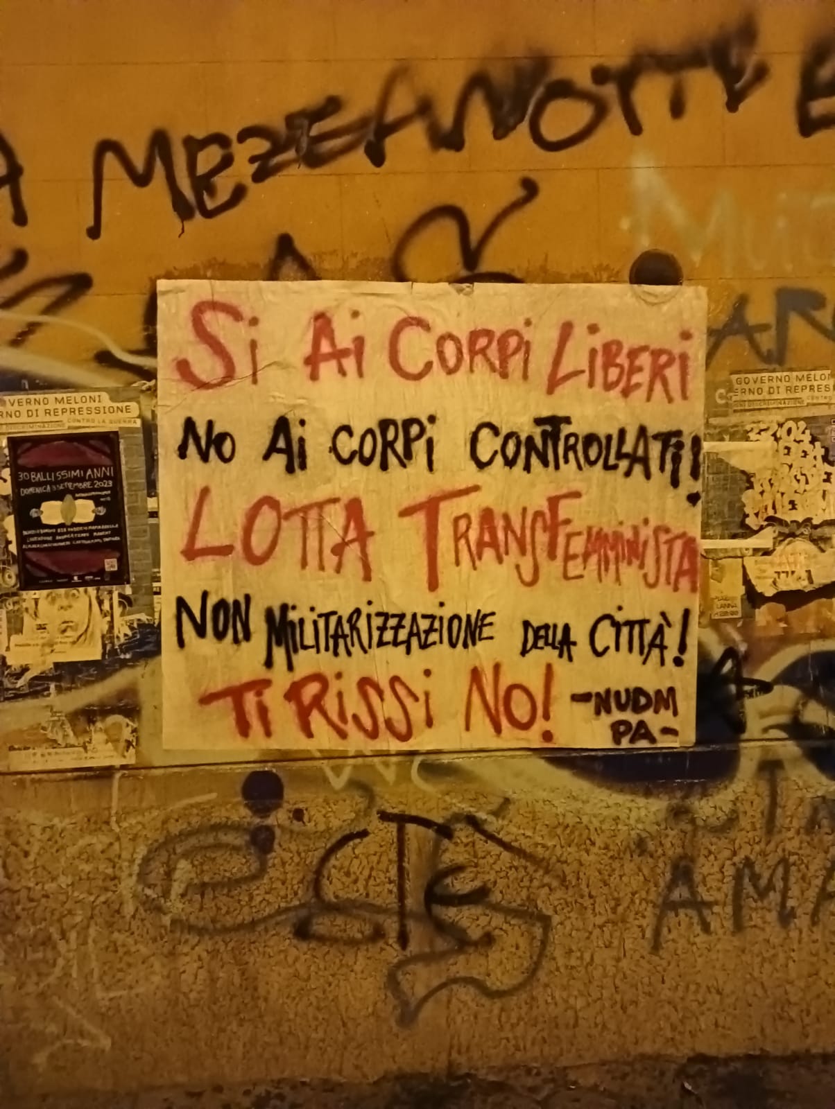 “Le strade della nostra città, sono luoghi che ci appartengono e che vogliamo affini ai nostri desideri e bisogni. Le nostre case, i posti di lavoro, le piazze e le strade sono spazi che dobbiamo vivere in libertà e sicurezza senza doverci necessariamente cautelare o sentirci obbligate a seguire un decalogo imposto da una visione maschilista e omolesbotransfobica. Le soluzioni proposte dalle istituzioni nazionali e locali, ovvero l’inasprimento delle pene, i divieti alla pornografia, la militarizzazione del territorio non solo non sono soluzioni utili a diminuire le violenze, ma hanno come unico effetto il restringimento degli spazi sicuri, la limitazione degli spazi di aggregazione sociale e delle libertà.