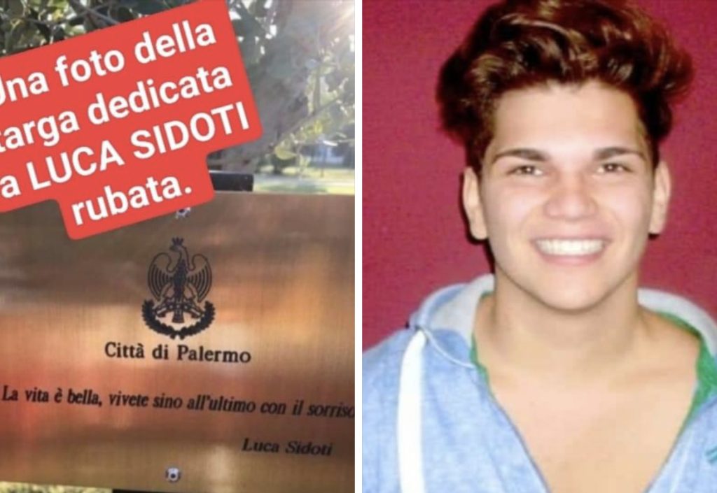 Atto vandalico a Palermo dove ignoti hanno rubato la targa realizzata in memoria di Luca Sidoti, nel giardino della Zisa, zona in cui il 18enne viveva.