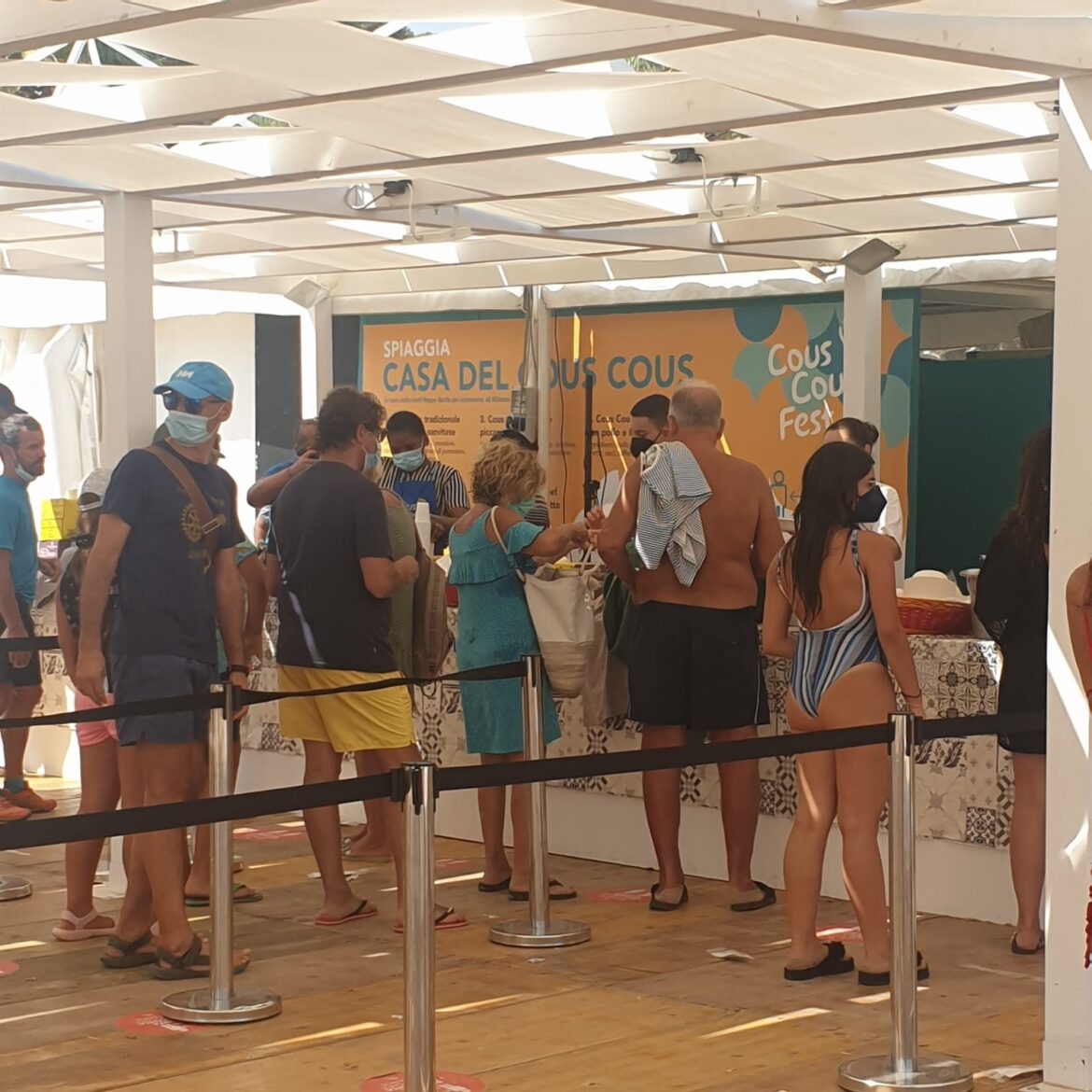 Il cous cous, in tutte le sue varianti, da quella tradizionale alle ricette internazionali, si potrà degustare alla Casa del cous cous sulla spiaggia. Ciò avverrà in modalità take away (asporto) e alla Casa del cous cous del Giardino del Santuario con posti a sedere. Per quest’ultima l’accesso avviene attraverso green pass. I punti di degustazione sono aperti tutti i giorni dalle ore 12 alle ore 24. Il ticket ha un costo di 10€ e comprende una porzione di cous cous a scelta tra le varianti proposte, acqua o un bicchiere di vino e un caffè omaggio. Sul palco salgono anche grandi chef come Filippo La Mantia ed Andy Luotto che presenteranno le loro creazioni, naturalmente a base di cous cous.