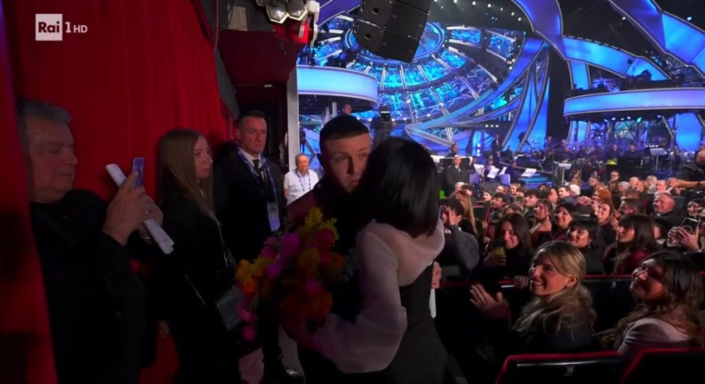 Lazza ha iniziato a cercarla tra le file dei posti in teatro. “Dov’è la mamma?”, ha chiesto Amadues con un sorriso. A quel punto il giovane ha adocchiato la signora Francesca e l’ha raggiunta per donarle il mazzo. “Volevo dare dei fiori speciali ad una persona speciale”, ha detto Lazza dopo un abbraccio con la madre, visibilmente commossa.