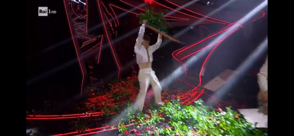 Blanco, ospite della 73esima edizione del Festival di Sanremo, spacca tutto sul palco dell’Ariston.