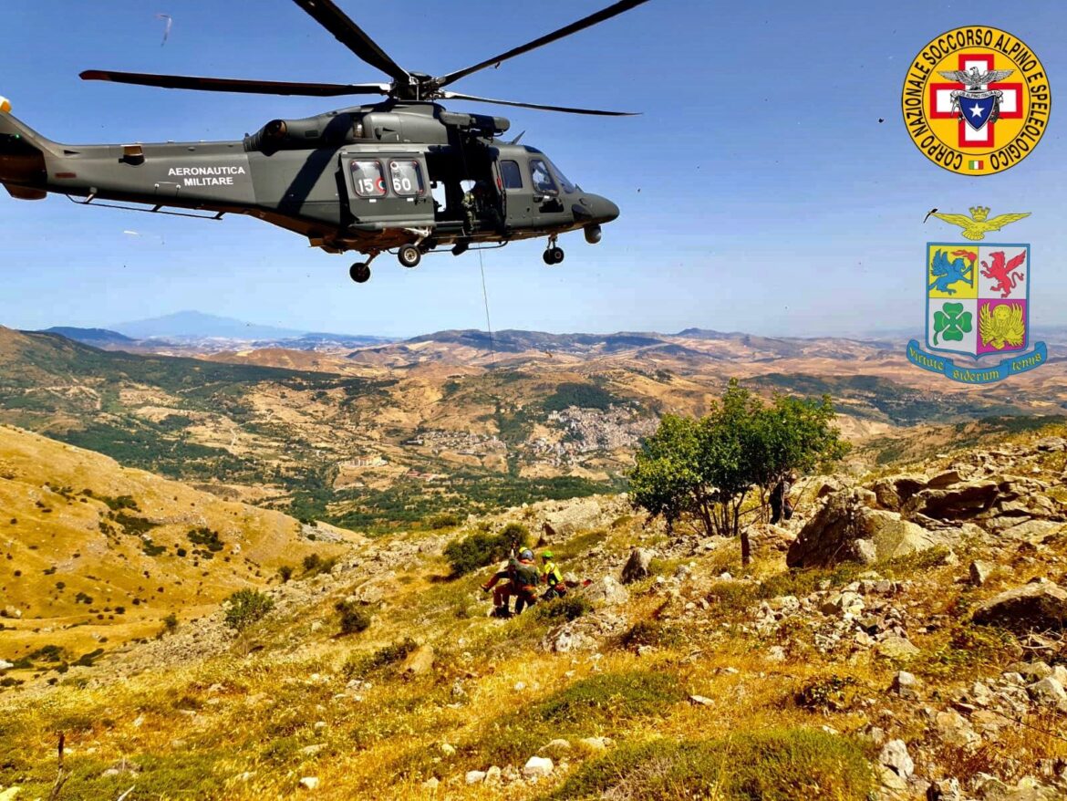 Intervento congiunto del Soccorso Alpino e Speleologico Siciliano e dell'82° Csar dell'Aeronautica Militare per soccorrere un uomo colto da malore...
