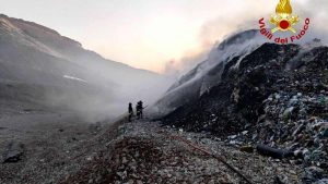 Iniziate stamani le lunghe opere di bonifica dei cumuli di rifiuti andati in fiamme ieri sera alla discarica di Bellolampo....