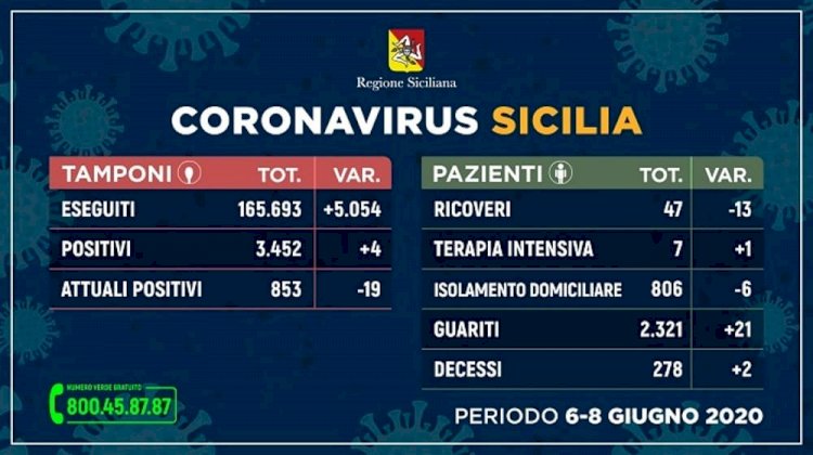 La Regione Siciliana ha comunicato il quadro riepilogativo dell’Isola in merito agli ultimi tre giorni.