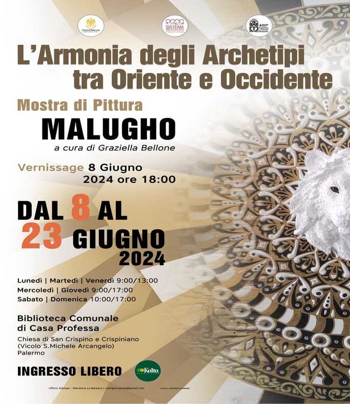“L’Armonia degli Archetipi tra Oriente e Occidente” : è il titolo della mostra di pittura dell’artista Malugho in programma a Palermo dall’8 al 23 giugno.
