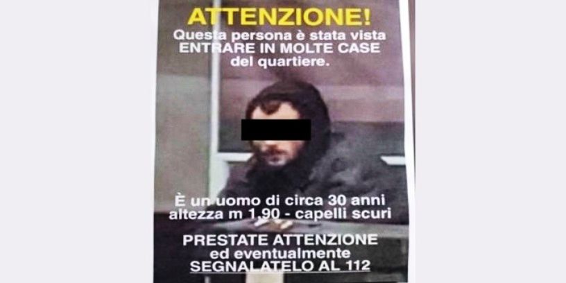 Nell’avviso, con la descrizione dell’uomo, si leggeva: “Attenzione, questa persona è stata vista entrare in molte case del quartiere. Segnalatelo al 112″.