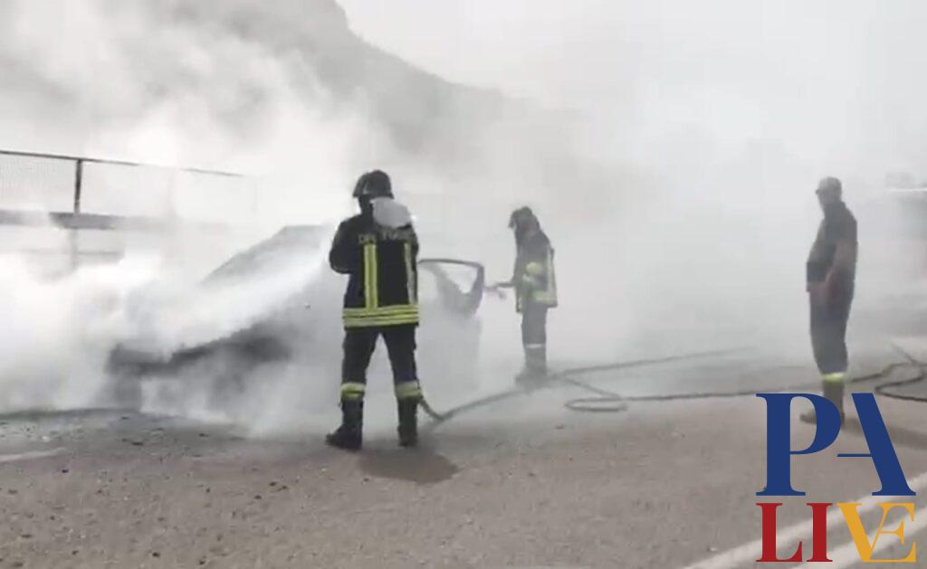 VIDEO |Auto in fiamme sulla Statale Palermo-Sciacca: pompieri in azione
