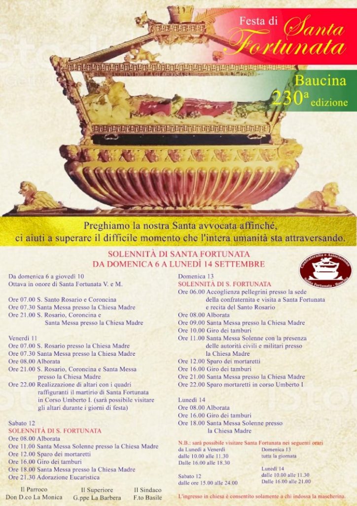 La 230esima edizione della tradizionale festa in onore di Santa Fortunata, che si tiene nel mese di settembre, sarà ricordata per le celebrazioni in forma ridotta, a causa delle restrizioni imposte dal Coronavirus.