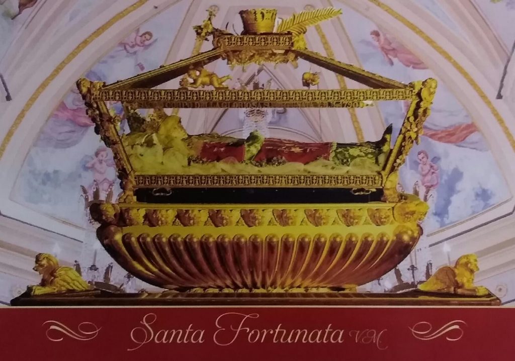 Alle 20:30, si terrà la processione solenne del Sacro Corpo di Santa Fortunata Vergine e Martire, con il corteo storico di personaggi in costume d’epoca romana, come avvenuto durante la sera precedente.