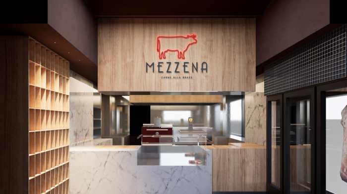 La squadra è guidata dall’executive chef del gruppo Leonardo Di Piazza e dal resident chef Davide Autovino. Mezzena propone un banco con vetrina dedicata ai semilavorati, per offrire una visione diretta sulla qualità e la lavorazione delle carni.