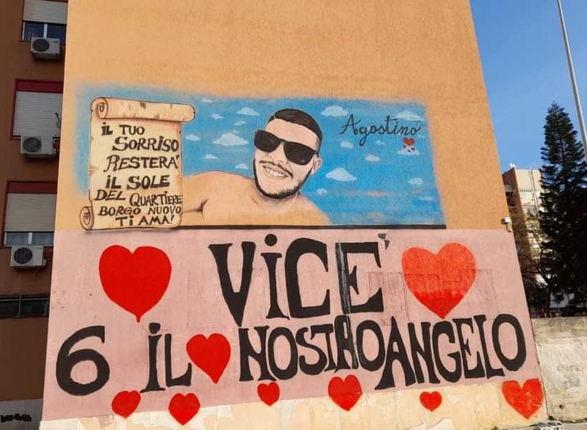 Ora il murale a Borgo Nuovo che ricorda il sorriso di Agostino che non smetterà di certo di brillare nei ricordi di chi l’ha conosciuto. L’opera è stata realizzata nei pressi di una precedente scritta commemorativa, che ricorda un altro giovane prematuramente scomparso. Si tratta di Vincenzo Ferrigno, 27enne deceduto nel 2019 folgorato da una scarica elettrica.