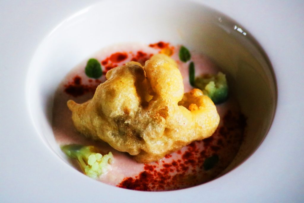 Il Broccolo in pastella su mousse di prosciutto cotto e paprika piccante, proposto da Floriana Fontana, Executive Chef dell’Hotel Boutique Domìa di Mondello, nasce dalla rivisitazione, in chiave più elegante, di un piatto della tradizione palermitana.