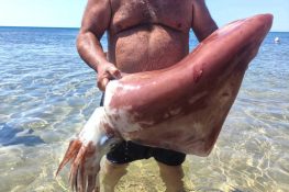 Un calamaro gigante è stato pescato nelle acque di Triscina di Selinunte, a Castelvetrano. Il mollusco è stato recuperato da Giacinto Angileri, 60 anni.