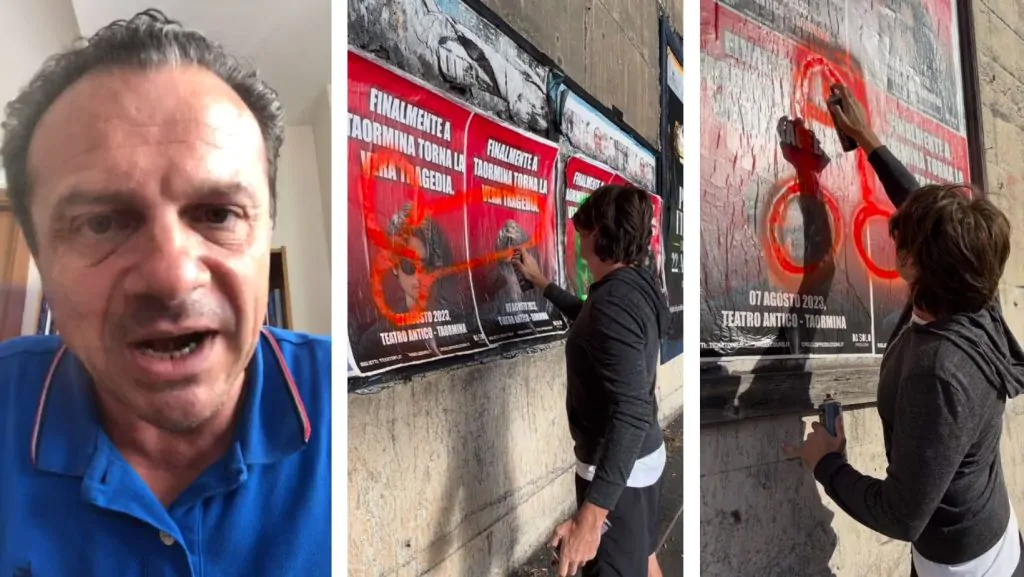 Scontro tra il palermitano Angelo Duro e il sindaco di Taormina, Cateno de Luca. Il comico, che questa sera si esibirà al Teatro Antico con lo spettacolo Sono cambiato, ha pubblicato sui suoi social un video in cui ha imbrattato i suoi stessi manifesti per le strade di Taormina con dei simboli fallici.