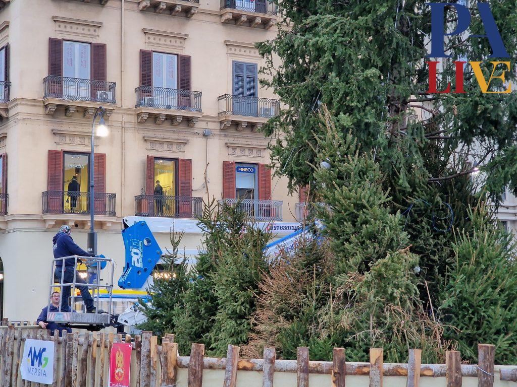 L’abete era arrivato da Padova ed era stato donato da Amg Energia al Comune. Come ogni anno, l’albero ha diviso i palermitani: c’è a chi è piaciuto e c’è invece chi lo ha ampiamente criticato ritenendolo non bello. Intanto proprio davanti il Teatro Politeama è stato completato il montaggio del palco che ospiterà Elodie e gli altri artisti che si esibiranno domenica sera. La struttura alta circa venti metri è stata montata in pochi giorni.