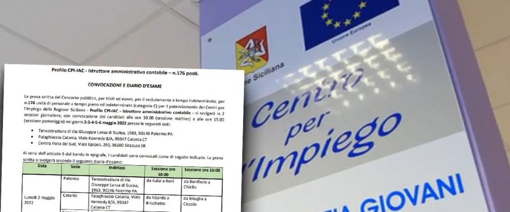 Disponibili ora anche le date per le prove scritte del profilo di Istruttore – Operatore mercato del lavoro (CPI-OML), che completerà il quadro delle assunzioni per la “categoria C” nei centri dell’impiego della Regione Siciliana