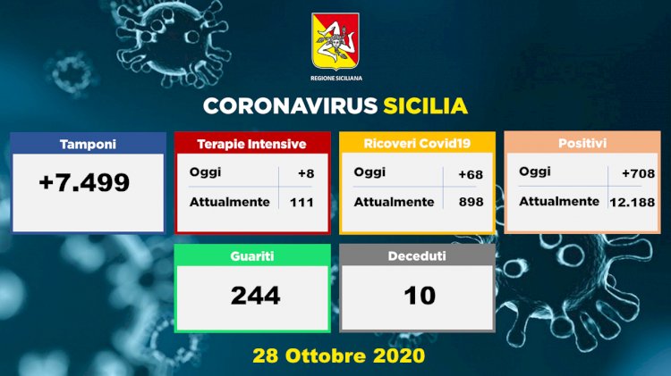 Il Coronavirus continua ad imperversare nella penisola spaventando tutti gli italiani. E la Sicilia, ovviamente, non fa eccezione. Nonostante le misure restrittive varate dal Governo di Giuseppe Conte nel nuovo decreto, i dati statistici dei contagi da Covid-19 continuano ad aumentare. Sono 708 i casi in più rispetto alla giornata di ieri, dato che porta gli attualmente positivi a 12.188, come emerge dal bollettino di oggi 28 ottobre. Sono 898 le persone ricoverate, di cui 111 in terapia intensiva. 11.290 sono in terapia intensiva. 244 i guariti. Si registrano invece dieci nuove vittime da covid-19: il totale sale così a 459. I tamponi effettuati sono 7.499.
