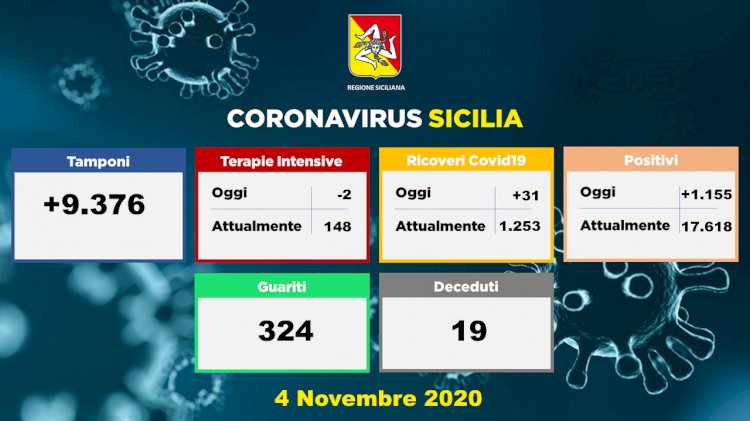 Coronavirus in Sicilia: 1.155 nuovi positivi, 19 morti e 324 guariti