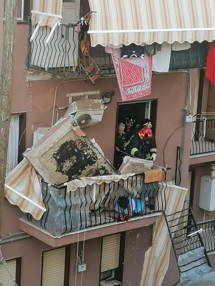 Crolla balcone a Caltanissetta, anziana intrappolata tra le macerie