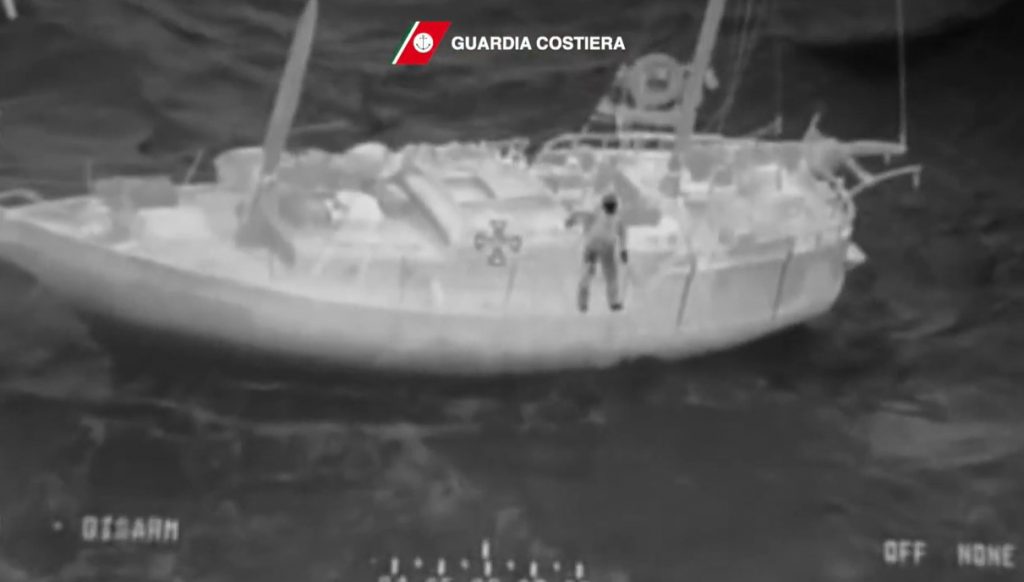 Alle operazioni hanno preso parte un aereo decollato da Catania, una motovedetta partita da Roccella Jonica e due mercantili dirottati in zona alla ricerca del natante. Con pessime condizioni meteo – 40 nodi di vento e mare 5 in peggioramento – l’aeromobile della Guardia Costiera ha finalmente avvistato la “Black Bit”, con il suo navigatore solitario che riusciva a lanciare segnali luminosi per farsi individuare.