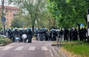 A Milano tensione e lancio di pietre e bottiglie contro la polizia da parte di 300 ragazzi che si erano...