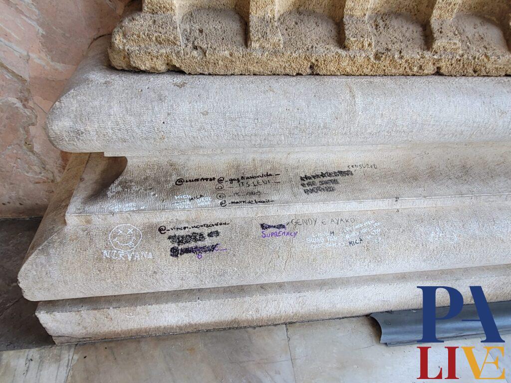 Dalla natura che, lasciata libera di proliferare, si riappropria dei suoi spazi a danno delle persone, ai giovanissimi vandali, ignari di cosa significhi rispetto del patrimonio artistico. In sintesi, la realtà di Palermo è ai minimi termini. Basti guardare cosa hanno combinato alcuni ragazzini – la foto dell’istante in cui i tre giovani stanno per fare la bravata è tratta dalla pagina Facebook Sicilia VHS – armati di pennarelli al Teatro Massimo, simbolo glorioso della loro Palermo. Non contenti di avere imbrattato il busto in bronzo di Vincenzo Bellini, posto sulla sommità della scalinata nella parte destra, hanno anche riempito di scritte la parte sinistra del muro. Tutto questo, magari, sperando di farla franca e, cosa ancora più grave, sicuri, grazie alla viralità delle foto o di qualche video, di suscitare l’ilarità dei propri coetanei.