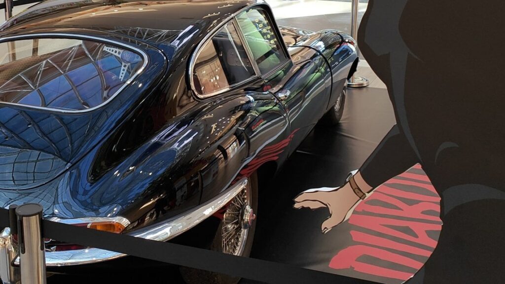 E poi ancora oggetti cult come la pipa di Ginko, il pugnale e la maschera di Diabolik, pannelli e sagome che riproducono i personaggi. Ma la chicca della mostra riguarderà la macchina originale di Diabolik, l’elegante Jaguar E-Type che Enzo Ferrari definì l’auto più bella mai realizzata.