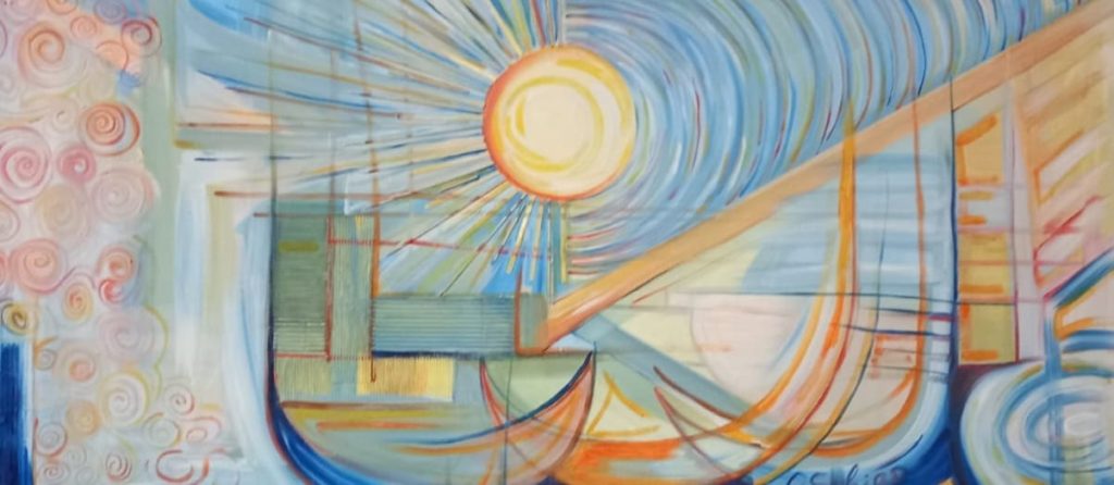 Il gioco di luci e linee curve è animato da una grande tensione spirituale, espressione della sensibilità e dell’empatia di Ornella Schirò.