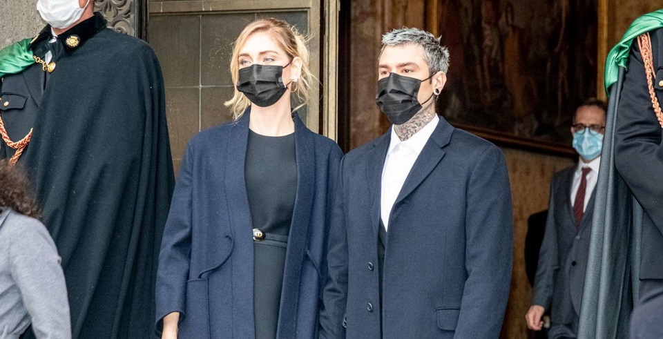 I “Ferragnez”, Chiara Ferragni e Fedez, sono stata premiati a Milano con l’Ambrogino d’oro per il loro impegno nella raccolta di fondi durante l’emergenza Covid. Elegantissima la Ferragni, che si è presentata con un’acconciatura raccolta con indosso un cappotto blu e un paio di décolleté rosse, mentre Fedez ha mantenuto la sua eccentrica tinta azzurra ai capelli optando per un cappotto nero e un gilet grigio.