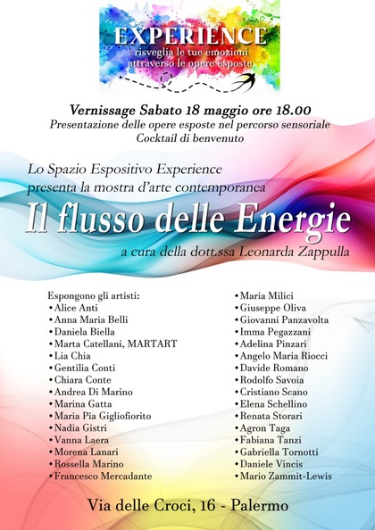 Allo spazio espositivo “Experience” di Palermo “Il flusso delle Energie”, collettiva a cura di Leonarda Zappulla