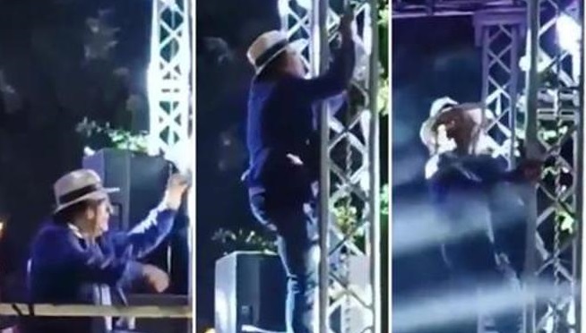 Follia di Al Bano ad 80 anni: durante un concerto si arrampica su un alto traliccio – VIDEO
