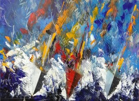 Maestro del colore, crea accostamenti cromatici vibranti e densi di emozione, trasmettendo la passione viscerale per il mare e la vela.