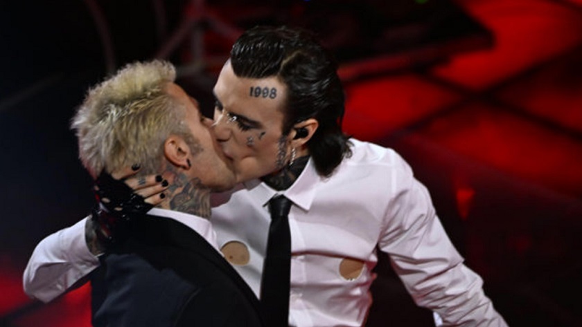 Il bacio che si sono scambiati sul palco di Sanremo Fedez e Rosa Chemical «non è un reato». La procura di Imperia ha infatti chiesto l’archiviazione dell’esposto presentato dal portavoce di Pro Vita & Famiglia, Jacopo Coghe, e dall’ex ministro per la Famiglia, Carlo Giovanardi nei confronti di Fedez e di Rosa Chemical, dopo la performance dei due artisti durante il Festival di Sanremo. Il gesto ha avuto una ampia eco, ed è stato parecchio criticato dai social e dalla stampa. Nell’esposto di Pro Vita & Famiglia veniva sostenuto che i due artisti, durante l’esibizione, «hanno tenuto un comportamento di una gravità inaudita in diretta tv che ha portato a un’ondata di indignazione generale per la vergogna, il disagio e la repulsione provocata dalla volgarità di un comportamento che riguarda la sfera sessuale».