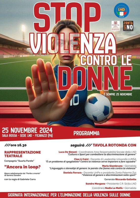 Lunedì 25 novembre 2024, in occasione della Giornata internazionale per l’eliminazione della violenza contro le donne, il Comitato Regionale Sicilia della FIGC – Lega Nazionale Dilettanti, presieduto da Sandro Morgana, organizza un’importante iniziativa dal titolo “In campo contro la violenza sulle donne”.