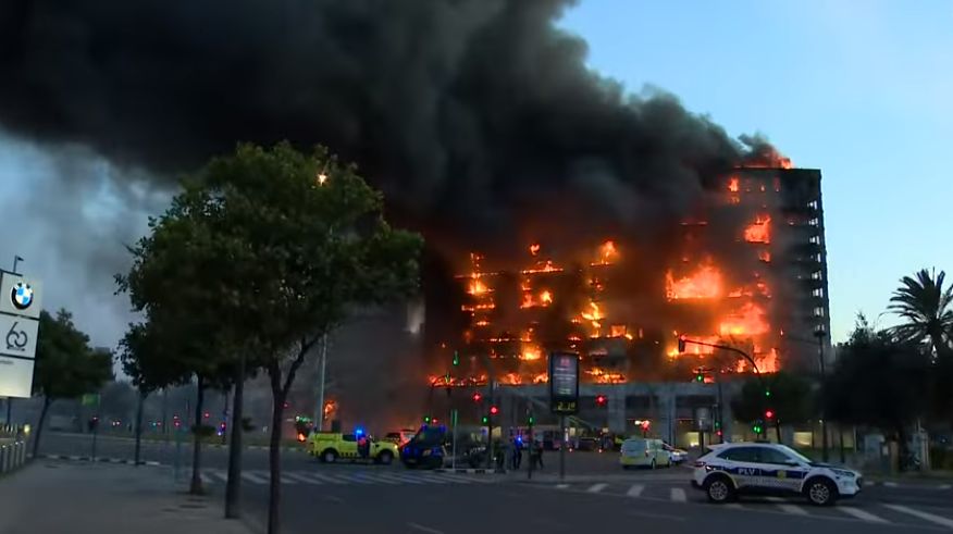 Sono terribili le immagini che arrivano da #Valencia, dove il fuoco sta divorando un condominio di 14 piani. I servizi d’emergenza hanno allestito un ospedale da campo per i primi soccorsi. pic.twitter.com/J31qneSsm5