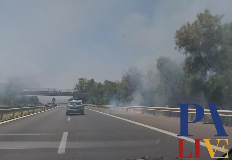 Le auto provenienti da Palermo in direzione Trapani vengono fatte uscire allo svincolo di Partinico a causa del propagarsi del fumo lungo l’autostrada.