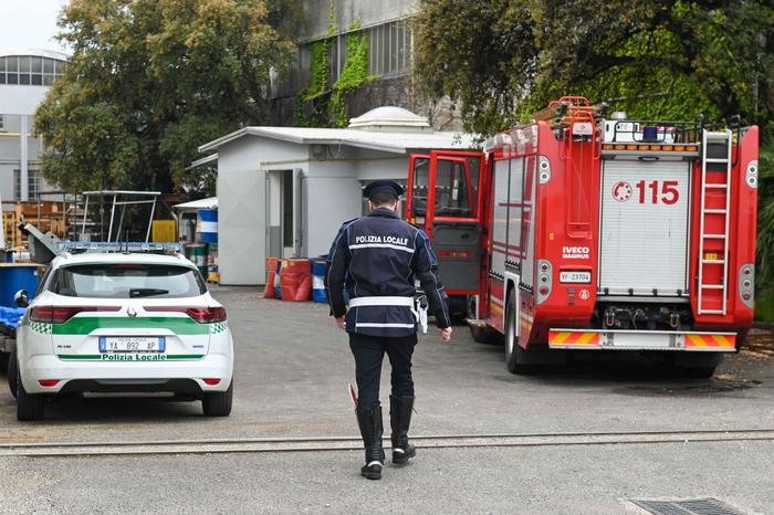 Municipal police and firefighters at the place where a worker died in an accident at work in Busto Arsizio, Italy, 05 May 2021. A 49-year-old factory worker was crushed to death by a huge industrial lathe Wednesday in a factory in Busto Arsizio north of Milan as Italy confronts a rash of workplace deaths after a 22-year-old mother of a five-year-old daughter endured a similar fate in a factory near Prato in Tuscany earlier this week. ANSA/Agenzia Blitz