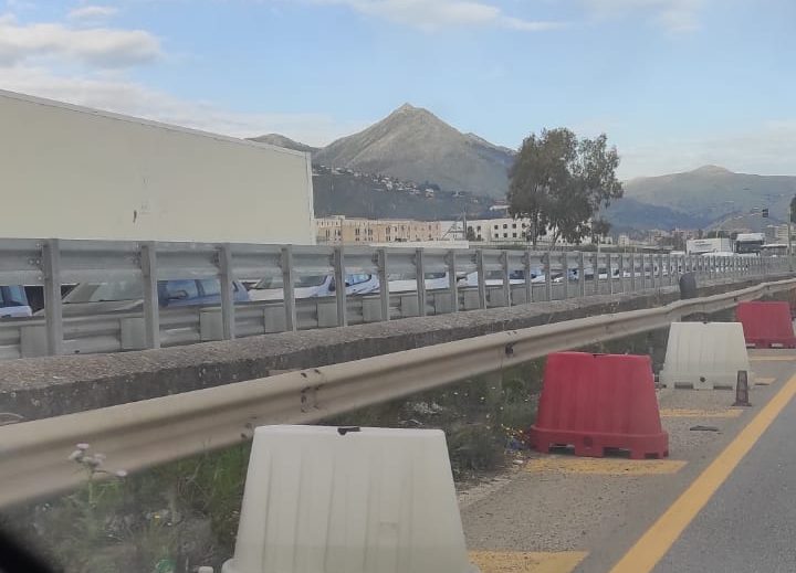 Viale Regione Siciliana – lato monte – corsia centrale direzione Catania (2° chiusura, altezza Ponte Bonagia): chiusura corsia Centrale, uscita per immissione Ponte di Bonagia;
