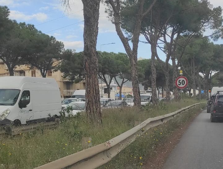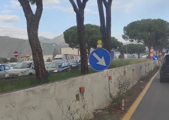 Viale Regione Siciliana – lato mare – direzione Trapani – chiusura immissione sulla corsia centrale – di fronte Trionfante con successiva re-immissione sulla corsia centrale;