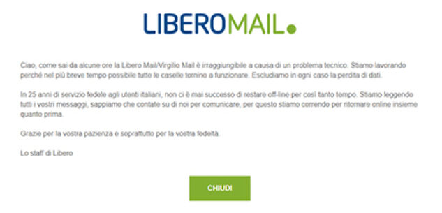Il timore è quello che sia iniziata una nuova fase di down come quella che ha coinvolto Libero Mail e Virgilio Mail alla fine di gennaio che per quattro giorni ha bloccato le caselle di posta di 4 milioni di utenti.