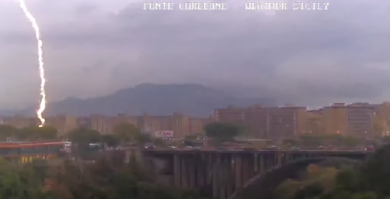 Maltempo a Palermo, fulmine colpisce in pieno Ponte Corleone | VIDEO